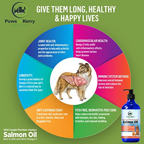 Is your pet constantly itching? Some dogs could incessantly scratch develop blotchy or red skin due to sensitivity, allergic reactions or the weather. Paws of Kerry Omega 3 fatty acids helps with such itch-prone skin types. The anti-inflammatory effect brings dogs itching skin relief, keeping them comfortable to enjoy great times with you. Improve their chance of longevity. Adding Fish oil omega 3 to your pet's diet increases the chance of longevity for your pet. Today's low quality dog food, lacks the right balance of nutrient, making supplementation very crucial. Our fish oil supports the immune system, reduces the risk of ill-health increases their propensity to live a healthy, long life. Does your pet suffer from achy joints or risk of arthritis? It is grueling to see your pet that once hopped jumped, suffer from excruciating pain due to joint problems. Tackle problems like hip pain in dogs or arthritis by adding our dog fish oil supplement to their diet. Our liquid Wild-Caught Salmon Oil help pet live a pain free, happy life. Do you look at your pet wish they had a shiny, lustrous coat? Dry skin could cause your pet's coat look dull coarse. Our Omega 3 fish oil for dogs is a great supplement for dog with dry skin lackluster coat. Restore its shine to a huggable coat she can flaunt. We at Paws of Kerry are committed to our 100% promise- Natural Ingredients ALWAYS - if it's not good for them, we don't add it! So go on CLICK "add to cart" to begin your pet's journey to an itch-free, joint pain-free, happy, healthy life! Any questions? Please contact us- we are here for you your pet!! 0