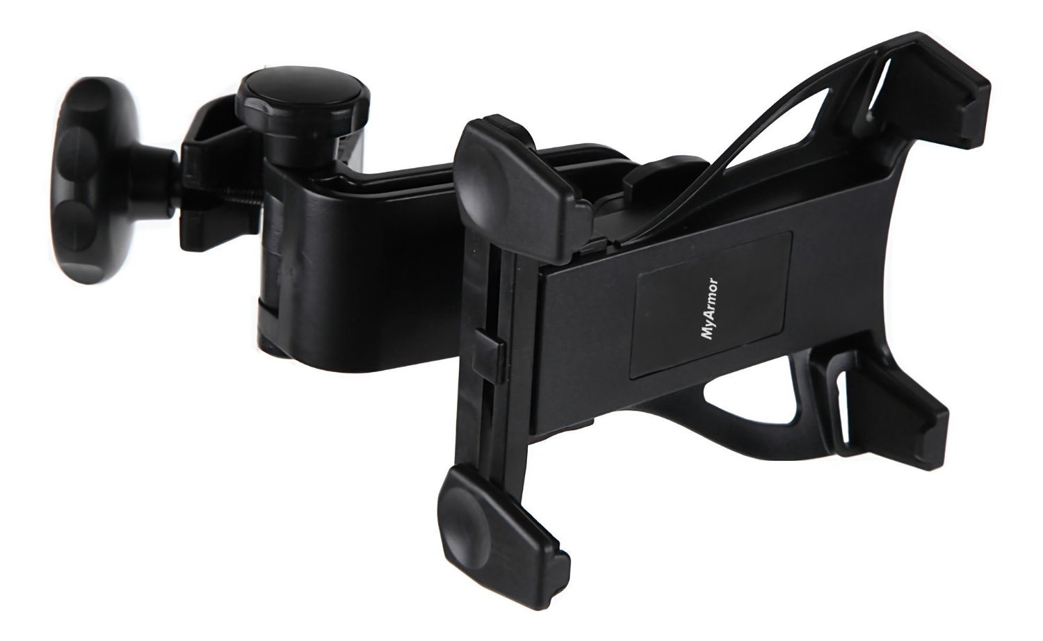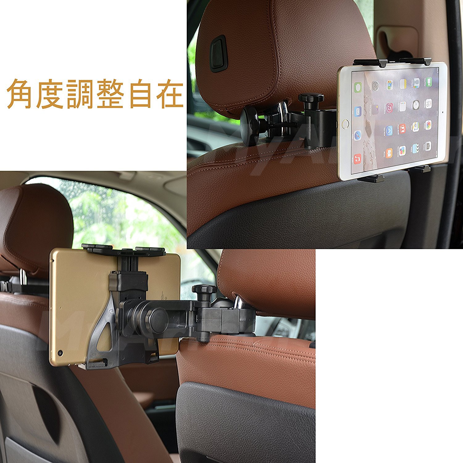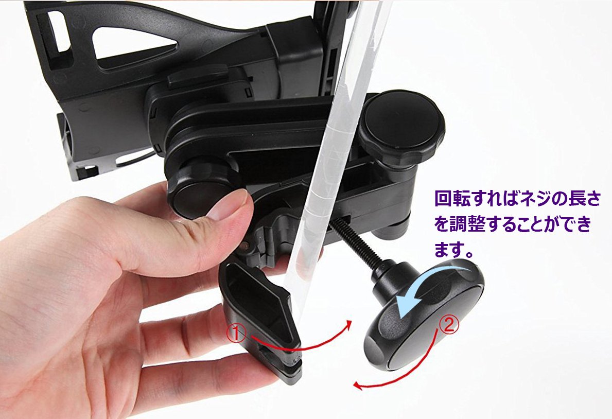 It is an in-vehicle holder which can fix tablet PC, smartphone on head rest bar.