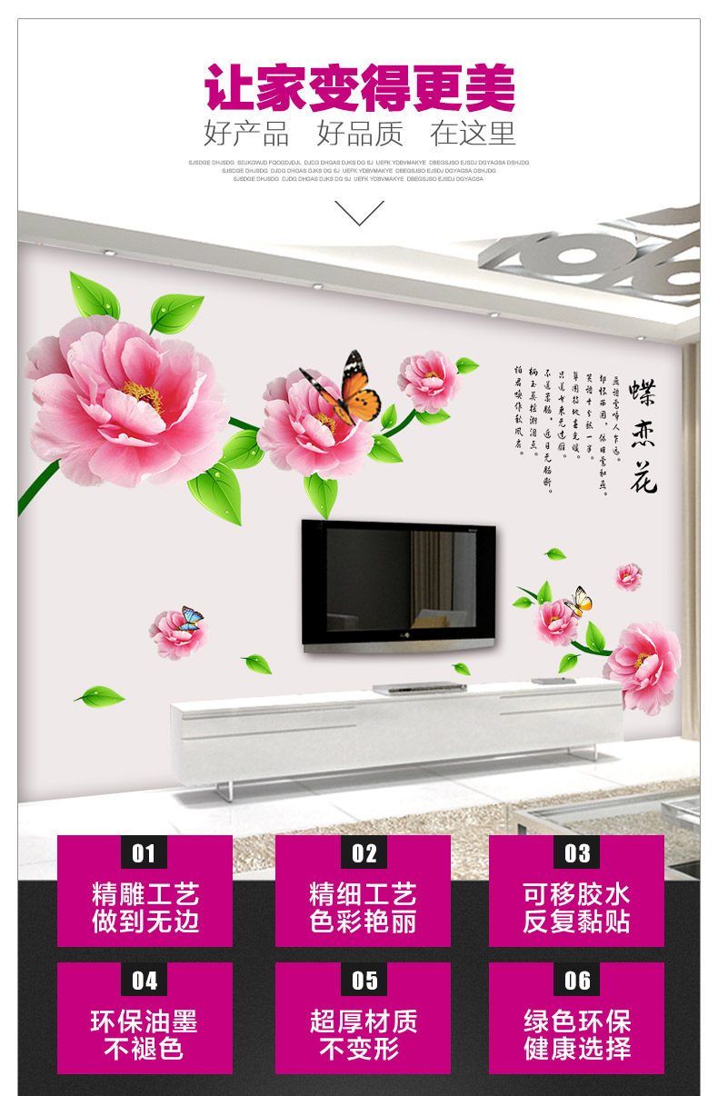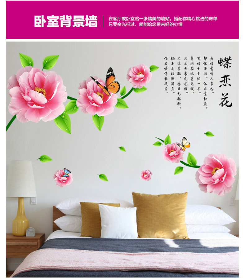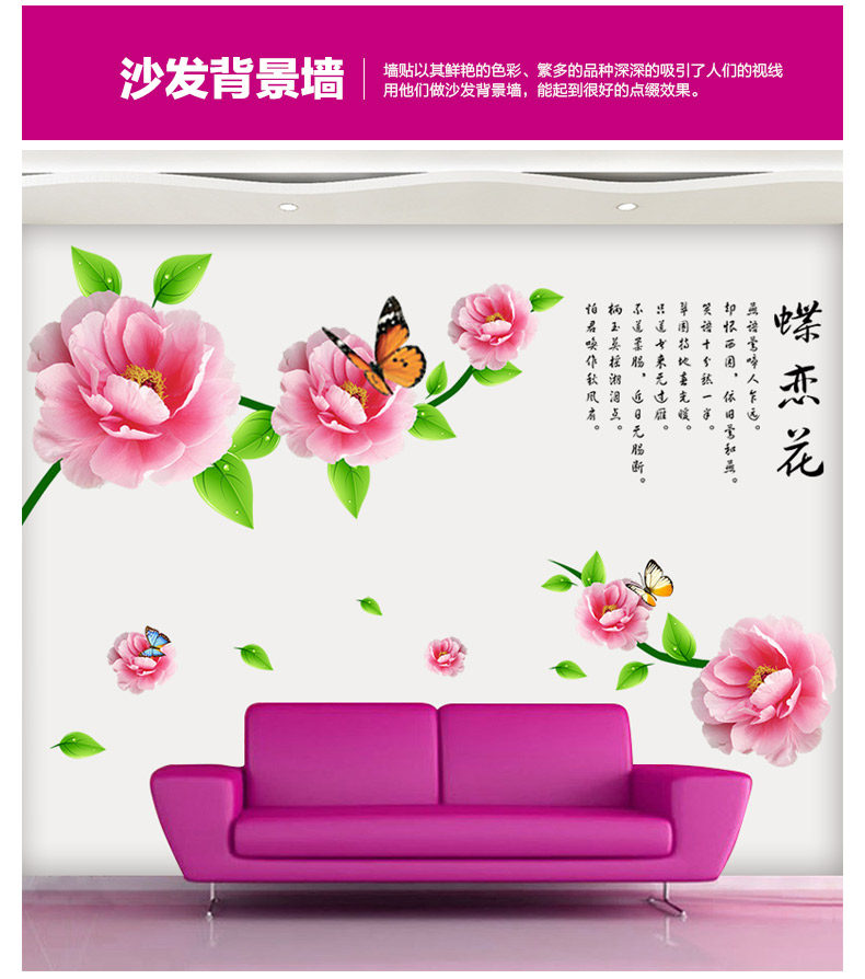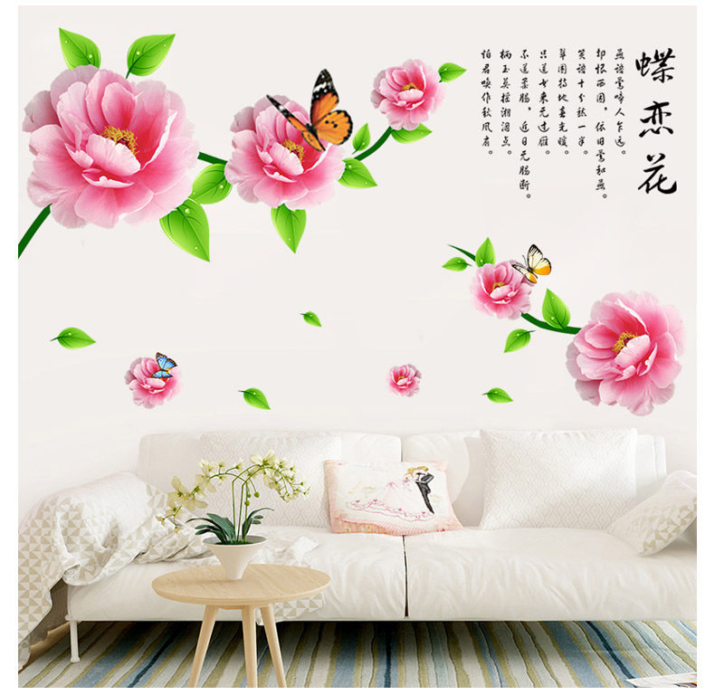 绿叶红花蝶恋花款墙贴画沙发客厅电视背景墙装饰壁贴自粘可移除