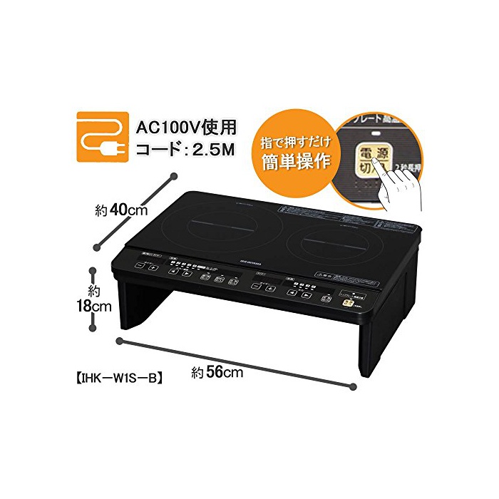 원본상품명: アイリスオ?ヤマ 2口IHコンロ 脚付 ブラック IHK-W1S-B