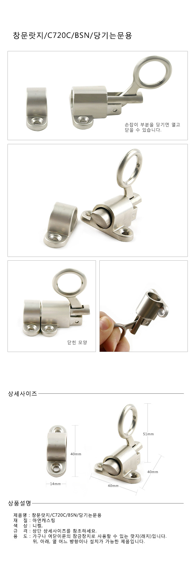 - 품명 및 모델명창문랏지 C720C BSN 당기는문용