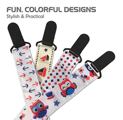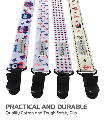 -. Binding : Baby Product -. Label : Stuff4Tots -. Manufacturer : Stuff4Tots -. ProductGroup : Baby Product -. ProductTypeName : BABY_PRODUCT -. Publisher : Stuff4Tots -. Studio : Stuff4Tots -. Title : Binky Baby Cotton Pacifier Clips. Pack of 4 Super Cute Soothie Holders From Stuff4tots. Stylish and Functional. The Best Way to Keep Baby's Binky Clean and Reachable! Strong, Durable and Easy to Use