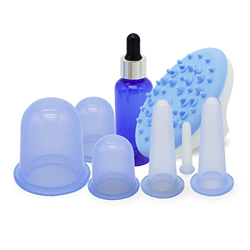 Timkdle Massage Therapy Cupping Set of 6 PCS Cupping Cups and 1 PCS Cellulite Massager Brush and 1PCS Essential oil Bottle For Anti-cellulite Wrinkle...