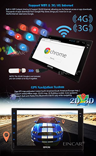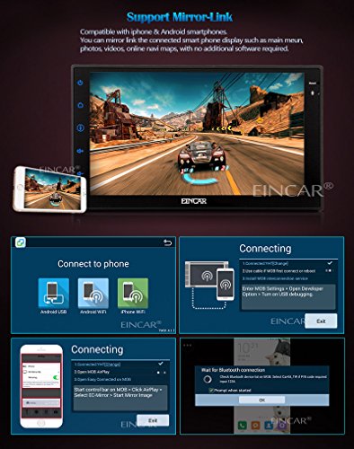 EinCar Android 5.1.1 Lollipop Quad Core 2 Din Car Stereo 7'' Capacitive Touch Screen GPS Navigation AM FM Radio Audio Receiver Support Mirrorlink/WiFi/Bluetooth