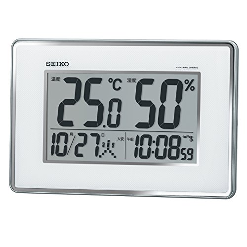 -. Title : セイコー クロック 掛け時計 置き時計 兼用 電波 デジタル カレンダー 温度 湿度 表示 銀色 メタリック SQ437S SEIKO