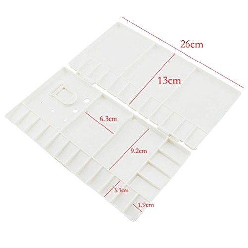 -. Feature : color: white / Material:Plastic / Package include: 1 Pcs Painting Palette / Note: *Manual measurement,please allow 1-2CM error. *The real color of the item may be slightly different from the pictures shown on website caused by many factors such as brightness of your monitor and light brightness