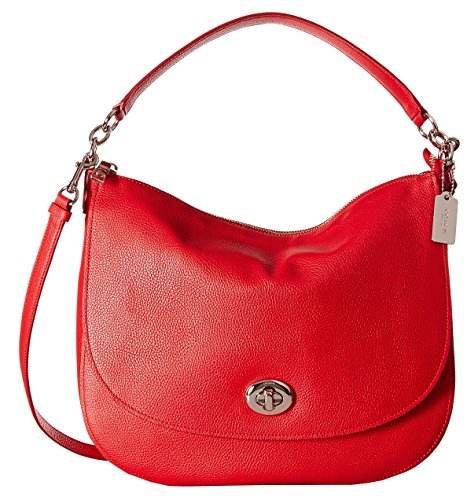 COACH Women's Pebbled Turnlock Hobo SV/True Red Hobo