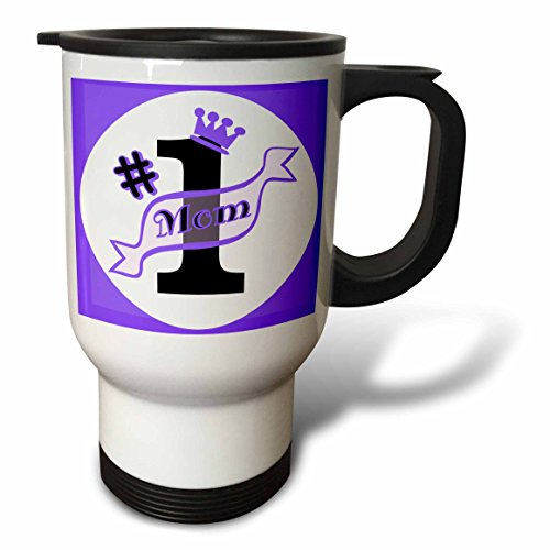 3dRose Number One Mom Stainless Steel Travel Mug, 14-Ounce, Purple