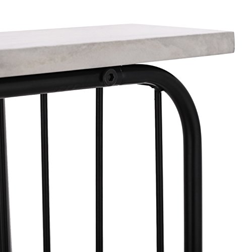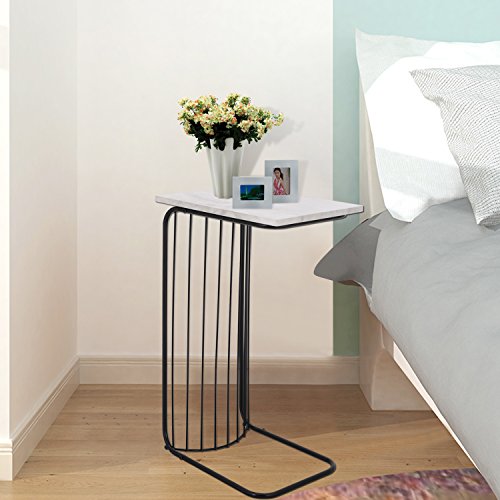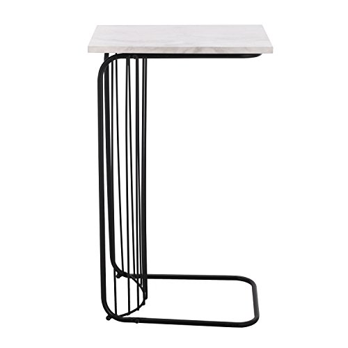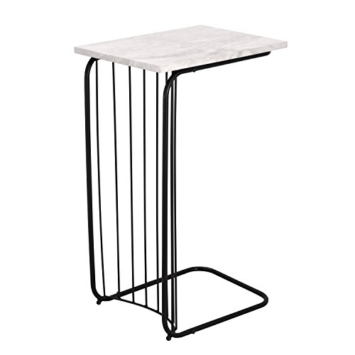 Adeco C-Sharped Accent Table, Marble Style Table Top with Black Metal Leg, 16x12 inches Table Top, Heights 26 Inches