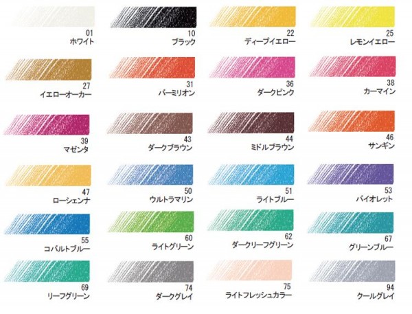 | デザインパステル鉛筆はパステルを芯にした、バランスの良い配色の色鉛筆で、可能な限り最高の品質を求めるアーティストのために設計されています。高品質顔料を使用していますので発色、着色力に優れ、パステルならではのぼかしや、水に溶かして水彩のような表現も可能です。 |