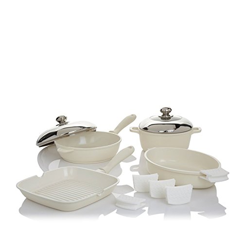 -. Feature : orena Garcia 11-piece Lightweight Healthy Cook Set with Technolon+ / Technolon nonstick coating is PTFE- and PFOA-free. / 2qt casserole pan with lid, 11-1/2" oval pan / 9-1/2" square grill pan, 9-1/2" saute pan with lid