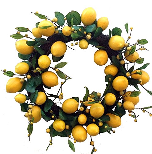 - Take a grapevine wreath base and load it up with mixed-size faux lemons, lemon sprays and lemon leaves and the result is a beautiful wreath