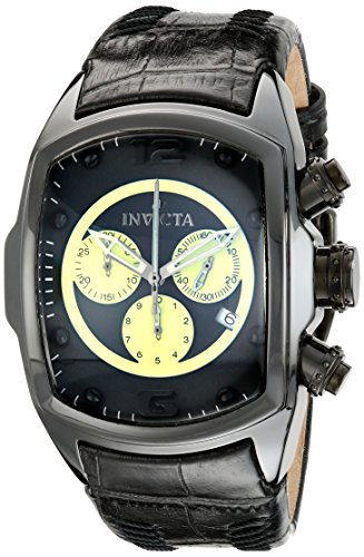 -. Binding : Watch -. Brand : Invicta -. Color : black -. Department : mens -. EAN : 0886678102853 -. Feature : Swiss quartz movement / Flame-fusion crystal; black ceramic case; black leather strap / Chronograph functions with 60 second, 30 minute and 1/10 of a second lime green subdials; date function / Black dial with black and lime green hands, black hour markers and arabic numerals; luminous; black ion-plated stainless steel crown and pushers / Water resistant to 99 feet (30 M): withstands rain and splashes of water, but not showering or submersion -. Label : Invicta -. Manufacturer : Invicta -. Model : 10285 -. MPN : 10285 -. PackageQuantity : 1 -. PartNumber : 10285 -. ProductGroup : Watch -. ProductTypeName : WATCH -. Publisher : Invicta -. ReleaseDate : 2012-03-31 -. Studio : Invicta -. Title : Invicta Men's 10285 Lupah Chronograph Black Dial Black Leather Watch -. UPC : 886678102853