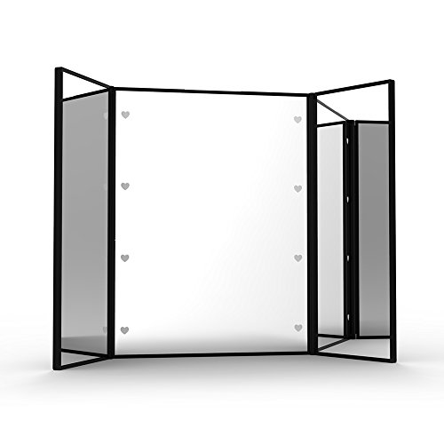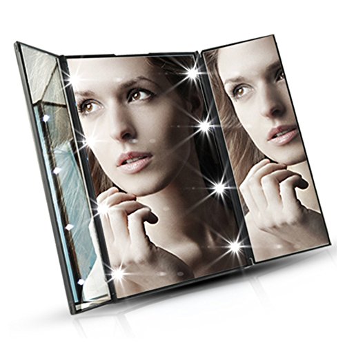 MQB Portable Folding Vanity Lighted Makeup Mirror - Three Panel and 8 LED Lights, Black