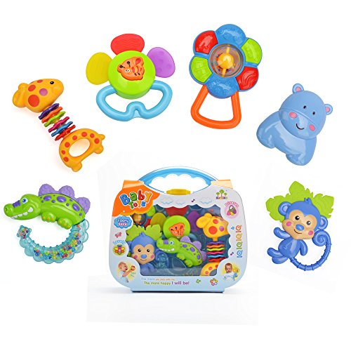 -. Title : 6 Stück Bunte Baby Tier Rasseln Erste Teether Spielzeug Geburtstag Geschenk mit einem blauen Kleinkind Koffer von Beby