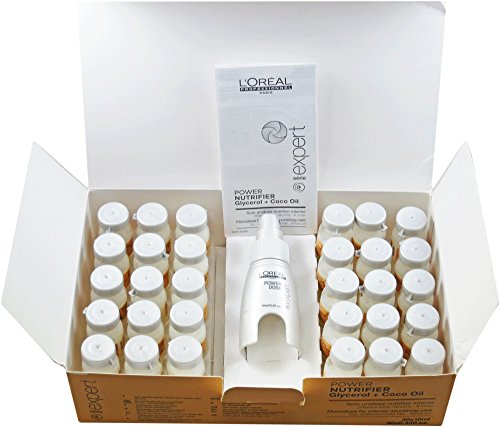 -. Binding : Health and Beauty -. Brand : L'Oreal Paris -. EAN : 3474636382972 -. Feature : Deep nourishing treatment for dry and undernourished hair. / This powerdose brings the right dose of nutrition to dry and undernourished hair with glycerol and coconut oil. / New professional silicone-free lightweight texture nourishes the hair and adds shine without weighing down. -. IsAdultProduct : 0 -. Label : L'Oreal Paris -. Manufacturer : L'Oreal Paris -. Model : 3474636382972 -. MPN : 3474636382972 -. PackageQuantity : 1 -. PartNumber : 3474636382972 -. ProductGroup : Beauty -. ProductTypeName : BEAUTY -. Publisher : L'Oreal Paris -. Size : 30 x 10 ml -. Studio : L'Oreal Paris -. Title : L'Oréal Professionnel Power Nutrifier Intense Repair Treatment 30 x 10 ml