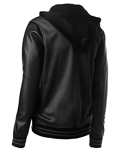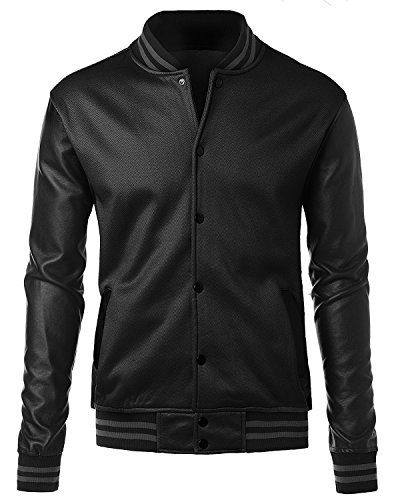 - Title : Mens Slim fit Baseball Fleece Jacket with High Quality PU Leather Sleeves with Hood