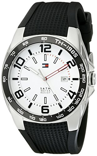 -. Binding : Watch -. Brand : Tommy Hilfiger -. Color : Black -. Department : Mens -. EAN : 0885997054386 -. Feature : Round watch with black numbered top ring and white dial with sporty Arabic hour markers and date window / 44 mm stainless steel case with mineral dial window / Quartz movement with analog display / Grid-textured silicone band with buckle closure / Water resistant to 50 m (165 ft) -. IsAdultProduct : 0 -. Label : Tommy Hilfiger -. Manufacturer : Tommy Hilfiger -. Model : 1790884 -. MPN : 1790884 -. PackageQuantity : 1 -. PartNumber : 1790884 -. ProductGroup : Watch -. ProductTypeName : WATCH -. Publisher : Tommy Hilfiger -. ReleaseDate : 2013-01-25 -. Studio : Tommy Hilfiger -. Title : Tommy Hilfiger Men's 1790884 Sport Stainless Steel Watch With Black Silicon Band -. UPC : 885997054386