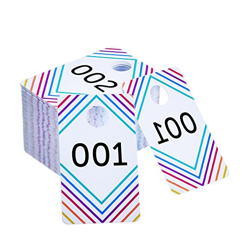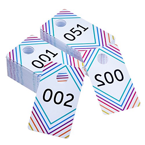 Package includes 100 pieces plastic tags: with 100 pieces consecutive numbers from 001 to 100, one side is normal the other side is backward numbers