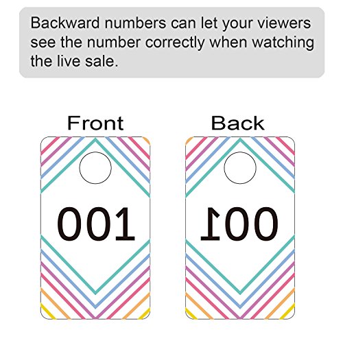 Unique and useful number tag: the number at the back of the tag is reversed; Backward numbers can let your viewers see the number correctly when watching the live sale