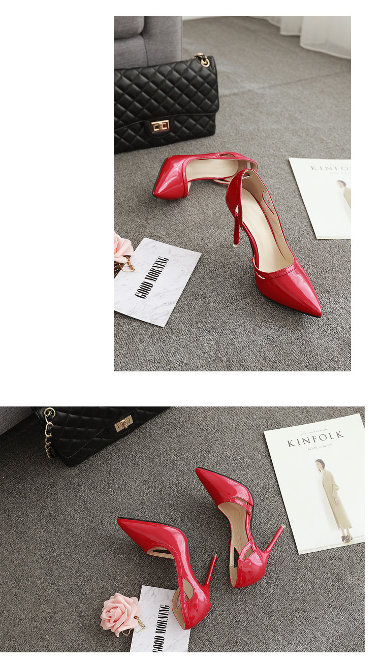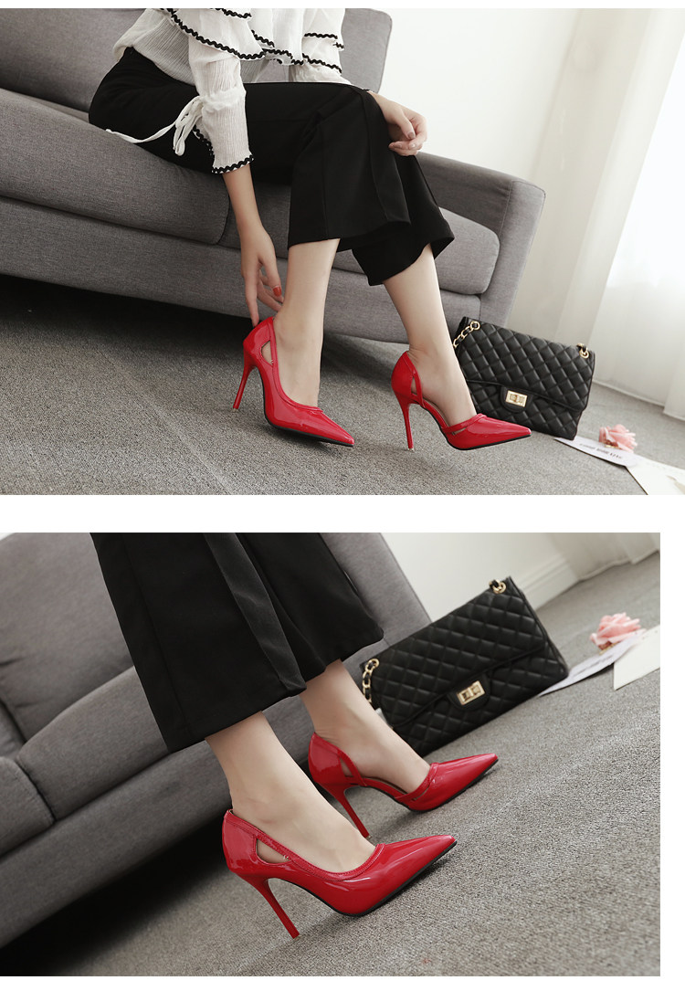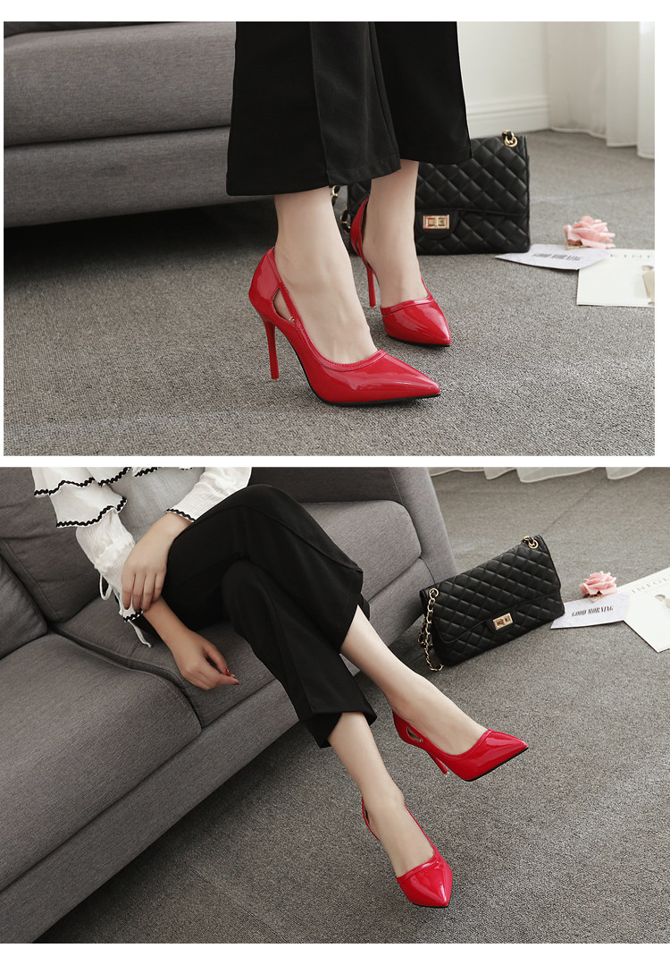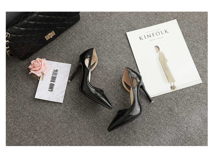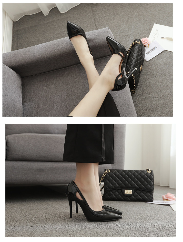 春秋季10cm尖头高跟鞋细跟百搭性感夜店漆皮银色单鞋女鞋