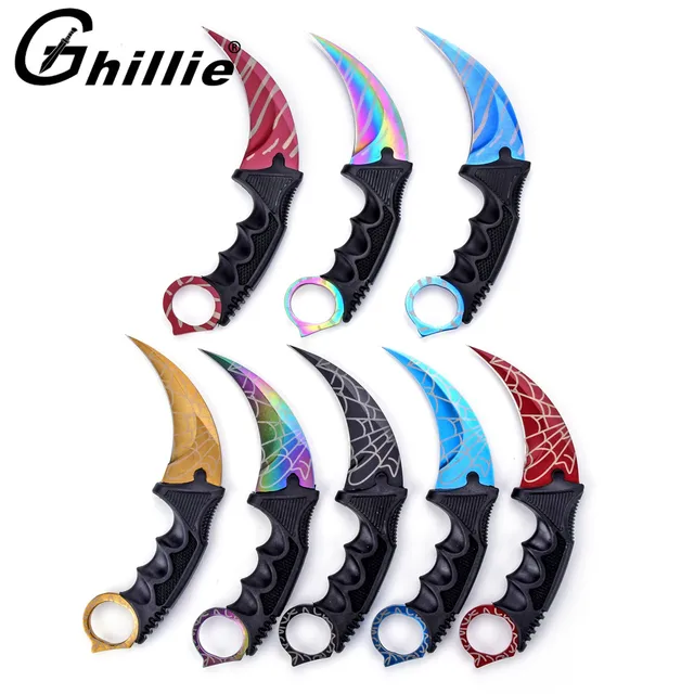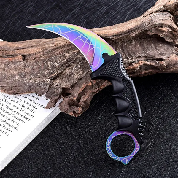 | [해외] CS 이동 Karambit 나이프 생존 전술 사냥 고정 나이프 전투 목 발톱 칼 유틸리티 캠핑 야외 포켓 구조 도구 |