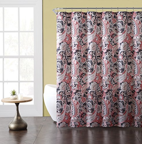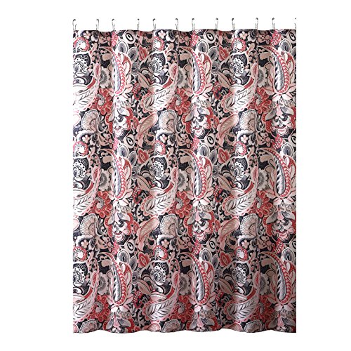 Elegant Gray Pink Taupe Fabric Shower Curtain: Large Floral Paisley Print Design, 72" x 72" inch