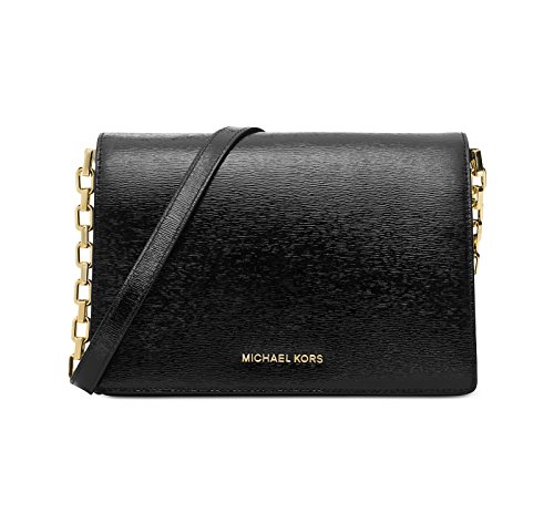 -. Brand : MICHAEL Michael Kors -. Color : Black -. Department : womens -. EAN : 0889154506206 -. Feature : Genuine leather with 18K gold plated hardware / Shoulder strap with 14" drop / Magnetic snap closure; exterior pocket at back of bag / Interior features 1 zip pocket, 2 open pockets, 6 card slots / Approximate dimensions: 10 1/4"(L) x 6 3/4"(H) x 3 1/2"(D) -. ProductGroup : Shoes -. ProductTypeName : HANDBAG -. Size : Large -. Title : MICHAEL Michael Kors Brinkley Large Leather Shoulder Flap Bag Black -. UPC : 889154506206