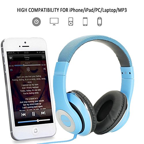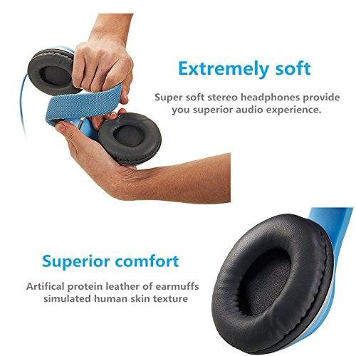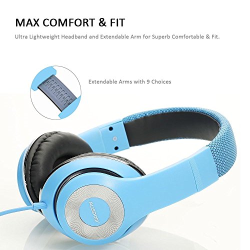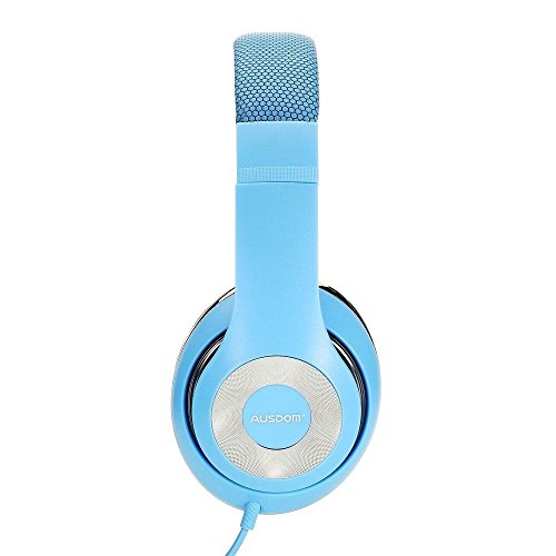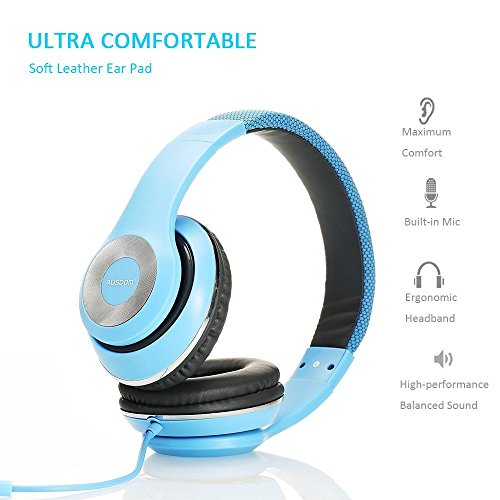 AUSDOM Lightweight Over-Ear Wired HiFi Stereo Headphones with Built-in Mic Comfortable Leather Earphones- Blue