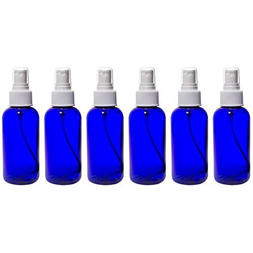 Cobalt Blue 4 oz Boston Round PET (BPA Free) with White Fine Mist Sprayer (6 pack) + Labels