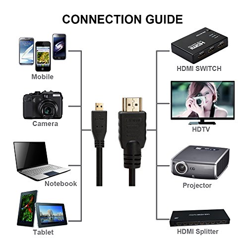 Hongye High Speed Micro HDMI Cable(Male A-Male D) Supports Ethernet, 3D&4K and Audio Return - 6 FT (Black)