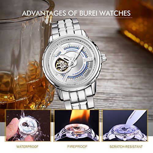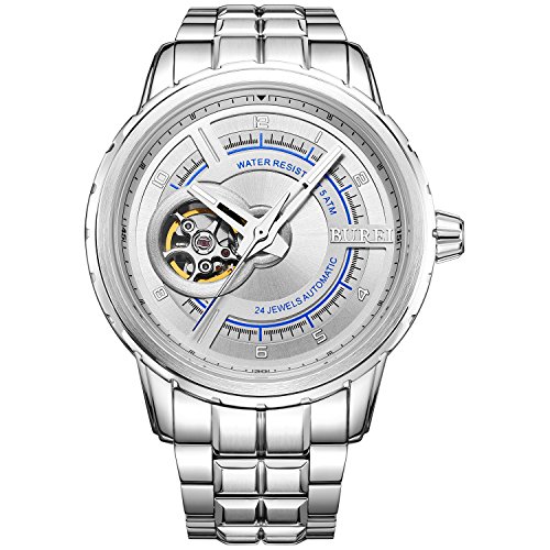 -. Title : (バオショ)BUREI メンズ 腕時計 ファッション的な おしゃれ 機械式ウオッチ 自動腕時計 夜光機能 シルバーステンレスバンド ホワイト文字盤  シルバーケース