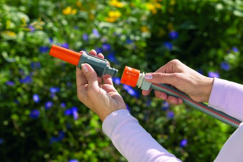 -. Feature : Gardena classic garden hose sprayer provides a simple and convenient solution to all of your watering, soil, and lawn care needs / Gardena sprayer has infinitely variable water jet from hard jet to fine mist / Soft plastic components offer a comfortable grip / Ideal for cleaning and watering / 1-year warranty