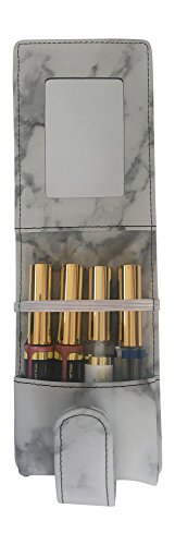 Premium Mirrored Lip Pouch for Lipstick, Lip Gloss, Lip Stain, Lip Balm, LipSense. Premium Features: Original Scallop Outside Pocket for Cards, Inside Elastic Band for Secure Fit (Gray Marble)