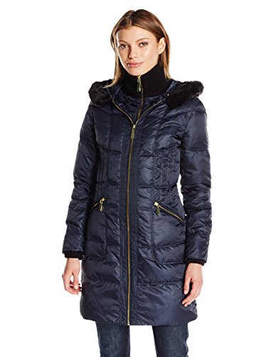 Product DescriptionLook chic and sophisticated in this belted mid weight down with faux fur detail.0