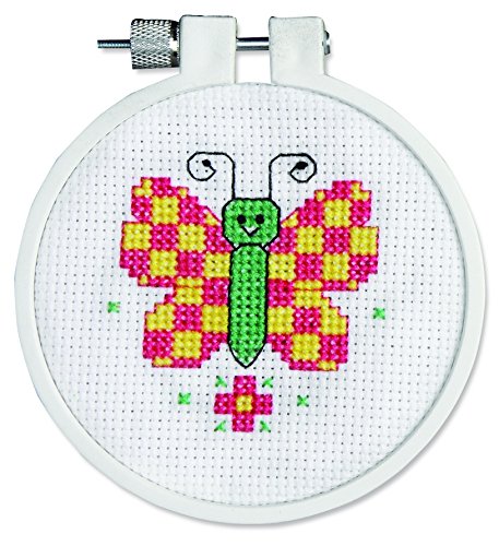 Janlynn 21-0981 Round Kid Stitch Checky Butterfly Mini Counted Cross Stitch Kit, 3-Inch