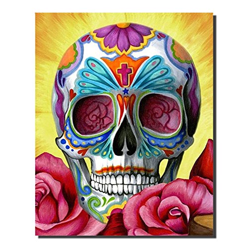 DIY Round 5D Diamond Painting Full Skull,Handmade Paste Painting Resin Drill Cross Stitch Kit Home Décor Wall Decoration (colorful skull, 30cm x40cm)