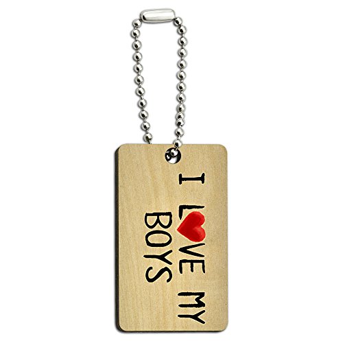 (Graphics and More)/Accessories/Wallets, Money Key Organizers/DIRECT FROM USA/I Love My Boys Written on Paper Wood Wooden Rectangle Key Chain