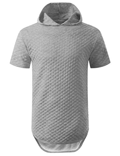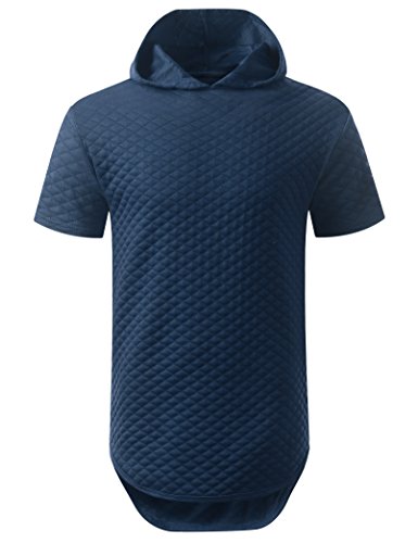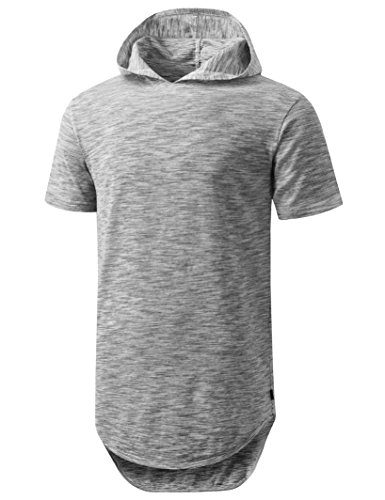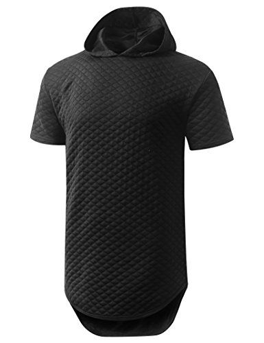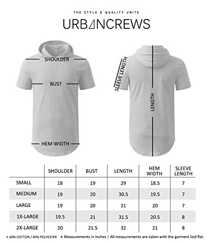 | URBANCREWS Mens Hipster Hip Hop Longline Pullover Short Sleeve Hoodie Shirt |