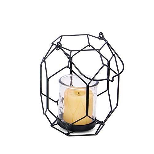 -. Title : Skalny 84728 Round Geometric Metal Wire & Glass Lantern