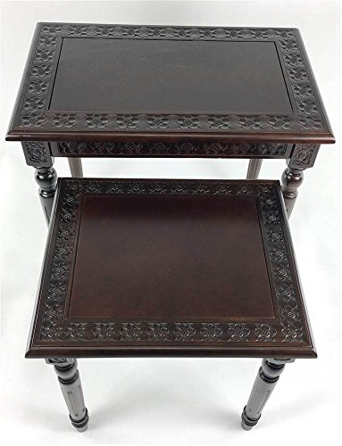 -. Brand : Wayborn -. Color : Brown -. EAN : 0619658440023 -. Feature : Includes small and large table / Carved design / Made from birchwood / 24 in. W x 15.5 in. D x 23 in. H (15.5 lbs.) -. Label : Wayborn -. Manufacturer : Wayborn -. MPN : JC002 -. PartNumber : JC002 -. ProductGroup : Furniture -. ProductTypeName : HOME_FURNITURE_AND_DECOR -. Publisher : Wayborn -. Studio : Wayborn -. Title : 2-Pc Nesting Table Set in Mahogany Finish -. UPC : 619658440023