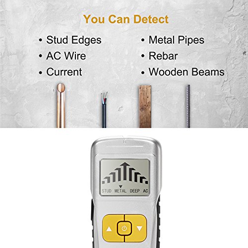 4-IN-1 wall stud finder: Quickly locates edges of the pipe, metal, rebars, joists,wooden beams,wood and live AC wire inside the wall, floors and ceilings, it keeps you from damaging unforeseen objects that are hiding behind your walls.