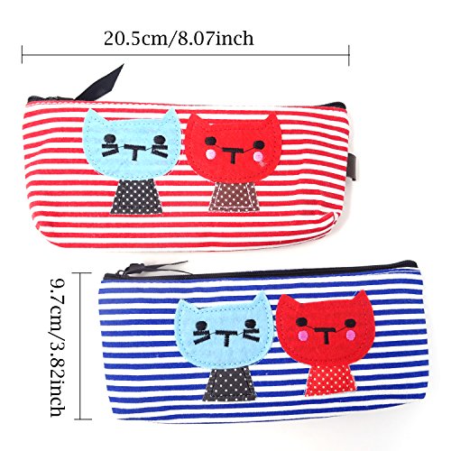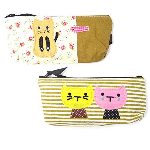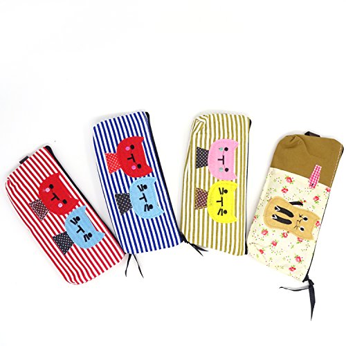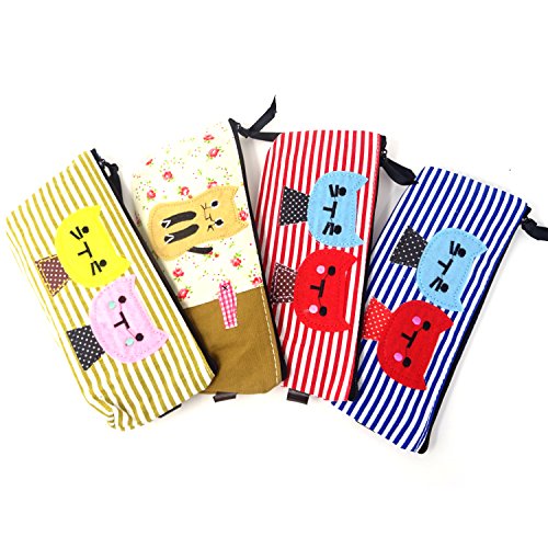 Honbay 4PCS Large Capacity Canvas Pen Pencil Case Fashion Cute Cat Canvas Pen Pencil Bags Cosmetic Makeup Bags Coin Bags