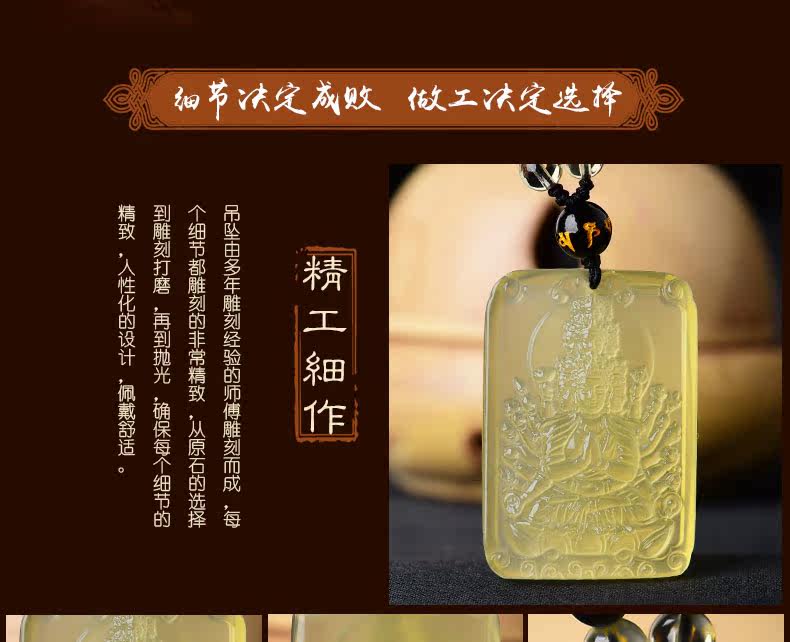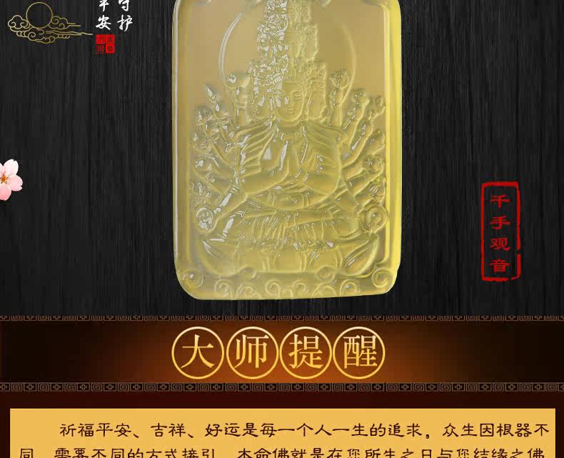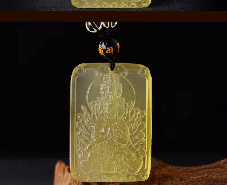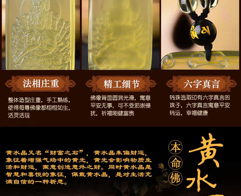 开光 天然黄水晶千手观音吊坠 生肖属鼠本命佛项链情侣款饰品挂件