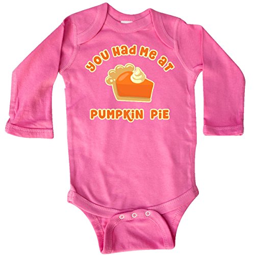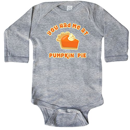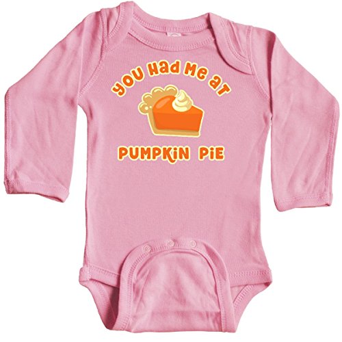 Product Description Funny Thanksgiving Long Sleeve Creeper with a cute slice of pumpkin pie and whipped cream topping says YOU HAD ME AT PUMPKIN PIE. Perfect for anyone who is thankful for pie. 0