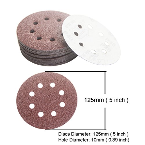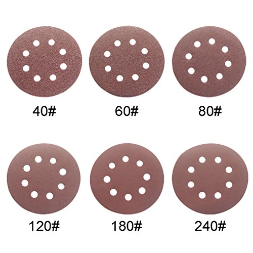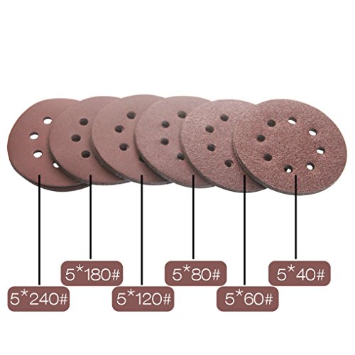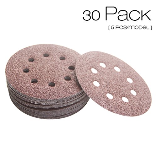 30PCS 5 Inch 8 hole Sanding Discs Sandpaper Assorted 40 60 80 120 180 240 Grits For Power Random Orbit Sanders