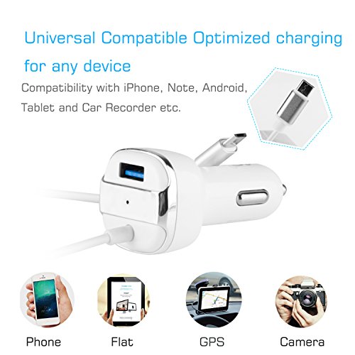 - Built-in Flexible retractable Cable - The coiled cable keeps the vehicle organized without a cord hanging about and charge your HTC, Blackberry, MP3 Players, Digital Cameras, PDAs, Mobile Phones,Samsung Galaxy S3 S4 S5 Note2 Note3 Note 4- Motorola Droid Razr Maxx, Moto X and LG G2 etc.