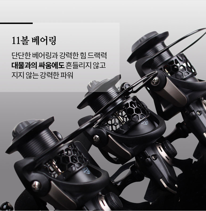 릴의 성능이란....- 대물이 낚여도 힘들지 않아야 합니다.(11볼 베어링에 강력한 힘과 고정형 핸들로 흔들림 없이 안정적으로 사용가능합니다)- 릴링시 편안해야 합니다.(부드러운 릴링은 낚시의 피로감을 줄여줍니다)- 디자인도 예뻐야 합니다.(촌티나는 색상보다 중후하고 예쁜 디자인은 낚시에 즐거움을 주지요!!)최강구성 강력추천 -> 어딜가도 이런 스펙 이런 구성은 없습니다.11볼 베어링의 강력한 힘, 세련된 디자인, 부드러운 릴링 완벽한 3가지 조합바다면 바다, 민물이면 민물, 루어면 루어 로 다양한 낚시 장르를 넘어서는 최강구성과 최강스펙을 자랑하는 머털 강추~ 릴 입니다!