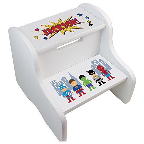 -. Title : Personalized Boys Super Hero White Two Step Stool