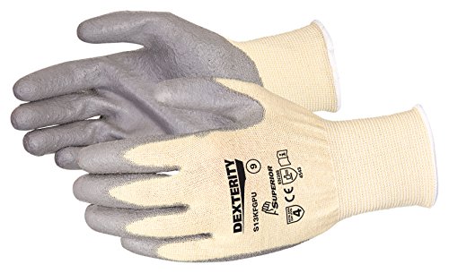 Superior S13KFGPU Dexterity Kevlar/Fiberglass String Knit Glove with Polyurethane Coated Palm, Work, Cut Resistant, 13 Gauge Thickness, Size 8 (Pack of 1 Pair)
